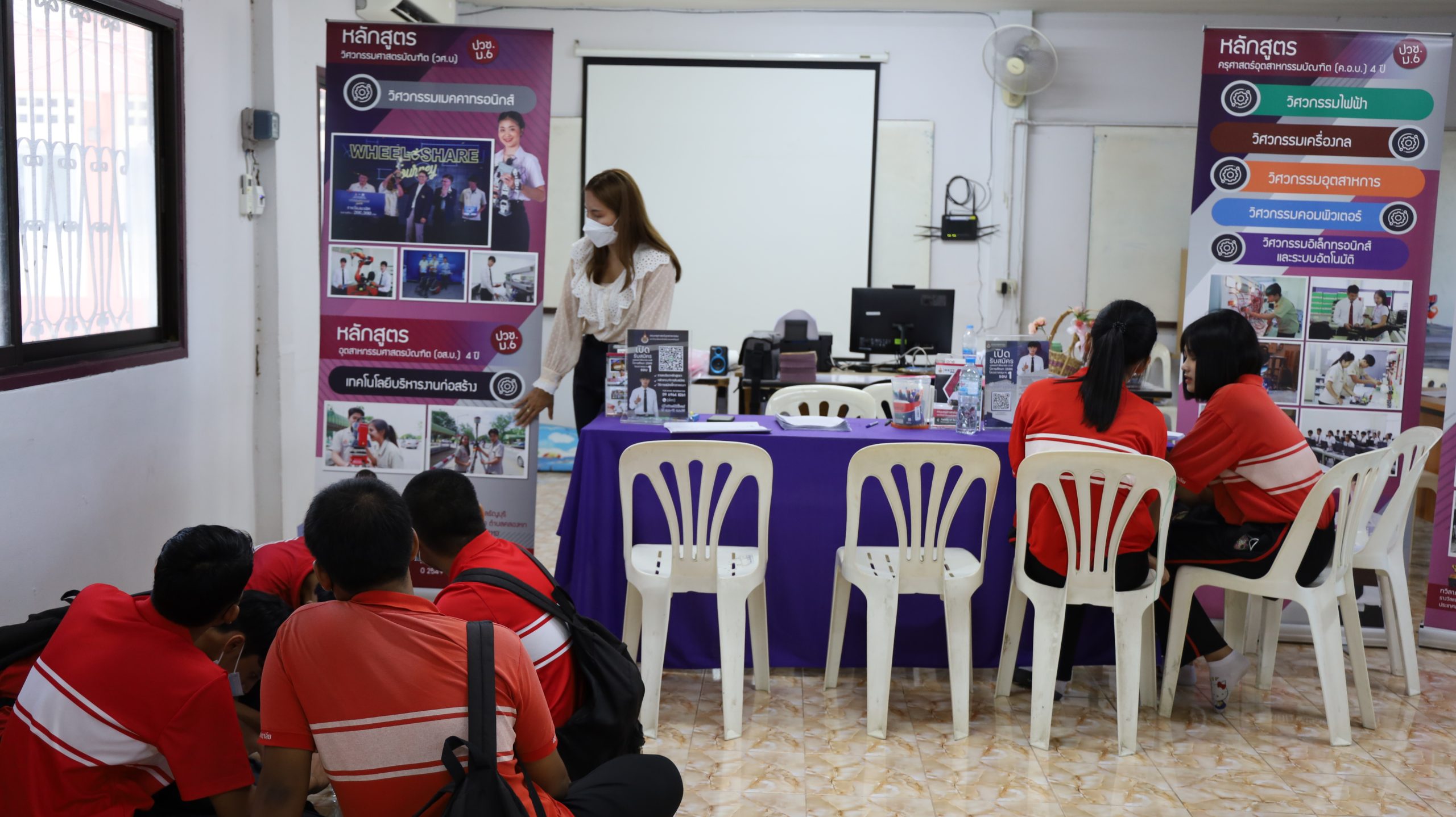 โดยมีนางสาวนัชชา ดีชัย หัวหน้างานแนะแนวและสื่อสารสัมพันธ์ คณะครุศาสตร์อุตสาหกรรม ให้คำแนะนำเกี่ยวกับการศึกษาต่อ