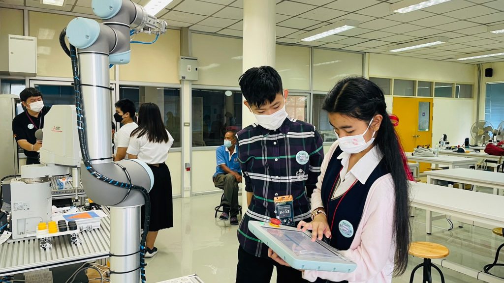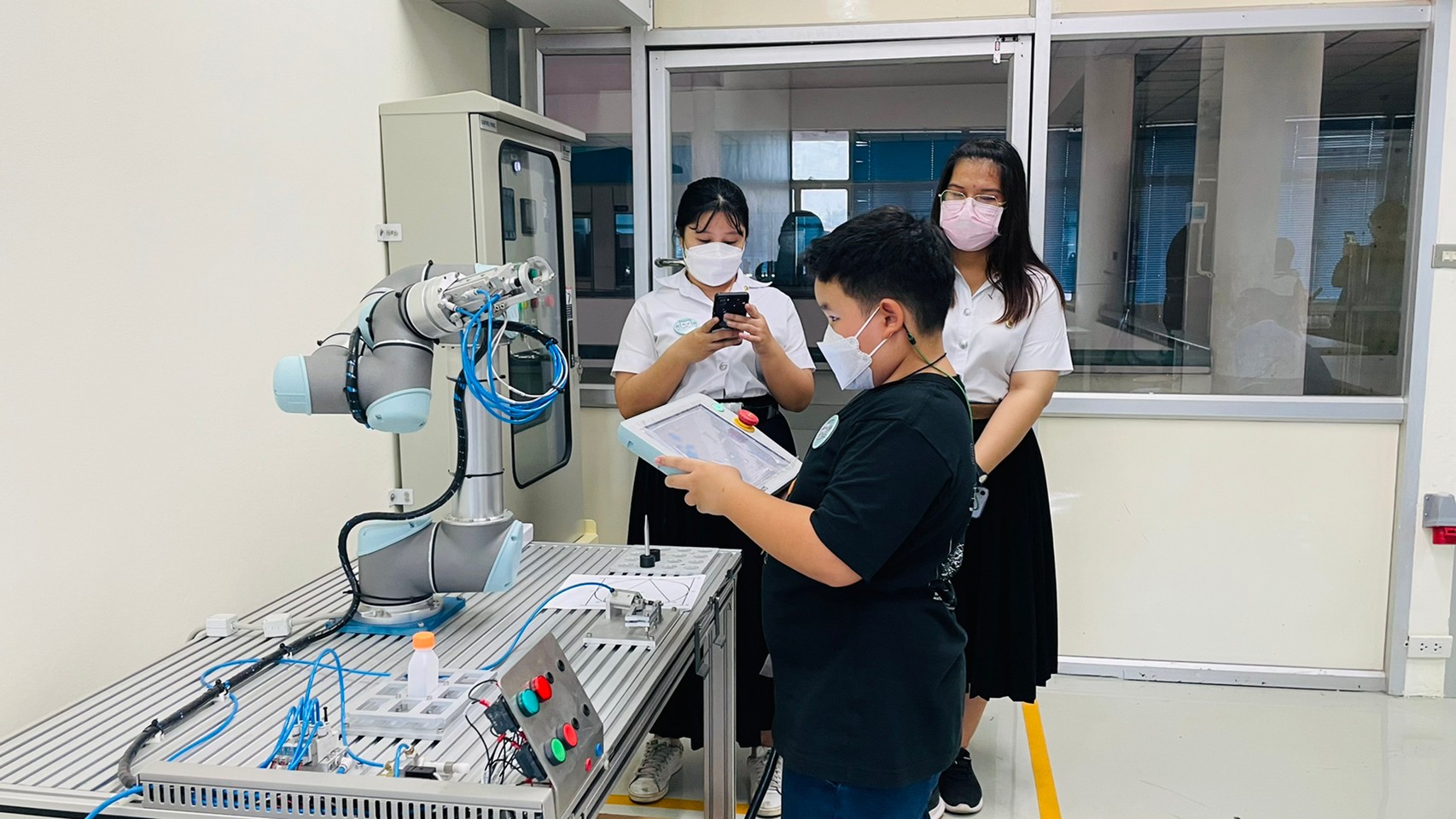 และในศุกร์วันที่ ๒๑ ตุลาคม ๒๕๖๕ คณะครุศาสตร์อุตสาหกรรม ได้ต้อนรับผู้บริหาร คณาจารย์และนักเรียนโรงเรียนสารสาสน์วิเทศ สายไหม เพื่อรับเกียรติบัตรการผ่านอบรมโครงการ Coding สานฝัน สร้างสรรค์ robot camp โดยผู้ช่วยศาสตราจารย์ อานนท์ นิยมผล คณบดีคณะครุศาสตร์อุตสาหกรรม เป็นประธานมอบเกียรติบัตร และดร.เยาวลักษณ์ พิพัฒน์จำเริญกุล ผู้ประสานงานโครงการ นำทัวร์มหาวิทยาลัยเทคโนโลยีราชมงคลธัญบุรี และเข้าศึกษาดูงานหลักสูตรวิศวกรรมเมคคาทรอนิกส์ และฝึกปฏิบัติการใช้ robot arm โดยมี รองศาสตราจารย์ ดร.ปัญญา มินยง ผู้ช่วยอธิการบดี และ อาจารย์อุดมศักดิ์ จันทรทาโพ ผู้ช่วยคณบดีคณะครุศาสตร์อุตสาหกรรม เป็นวิทยากร เพื่อเตรียมพร้อมสู่การเป็นนวัตกรในอนาคต