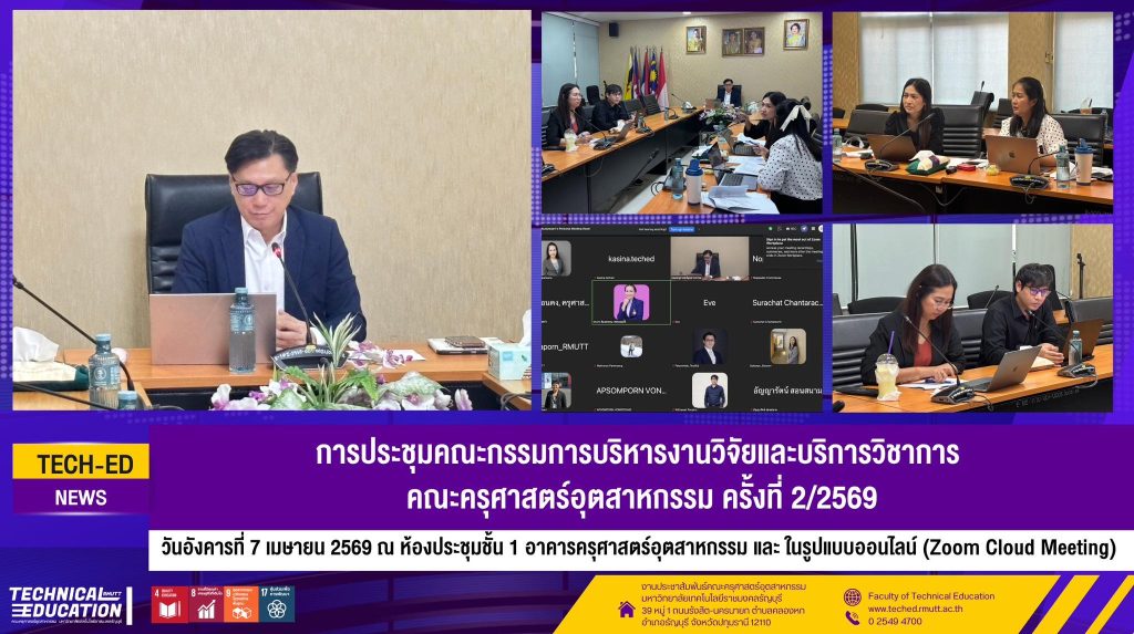 คณะครุศาสตร์อุตสาหกรรม แห่ง Rajamangala University of Technology Thanyaburi จัดการประชุมคณะกรรมการบริหารงานวิจัยและบริการวิชาการ ครั้งที่ 2/2569 เพื่อกำกับ ติดตาม และวางแผนการดำเนินงานด้านงานวิจัยและบริการวิชาการของคณะให้เป็นไปอย่างมีประสิทธิภาพ