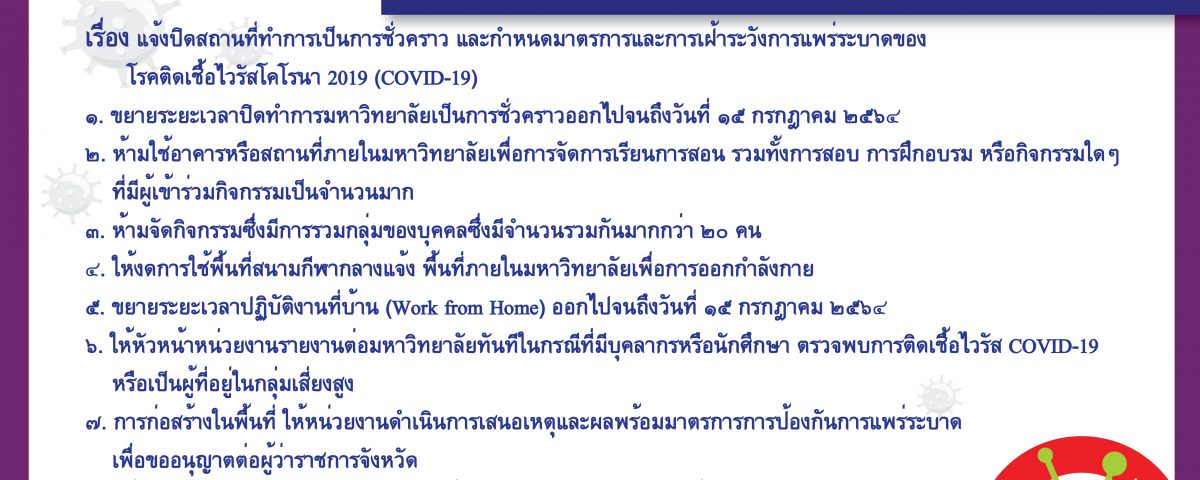 ประกาศศูนย์ป้องกันและควบคุมโรคติดเชื้อไวรัส COVID-19