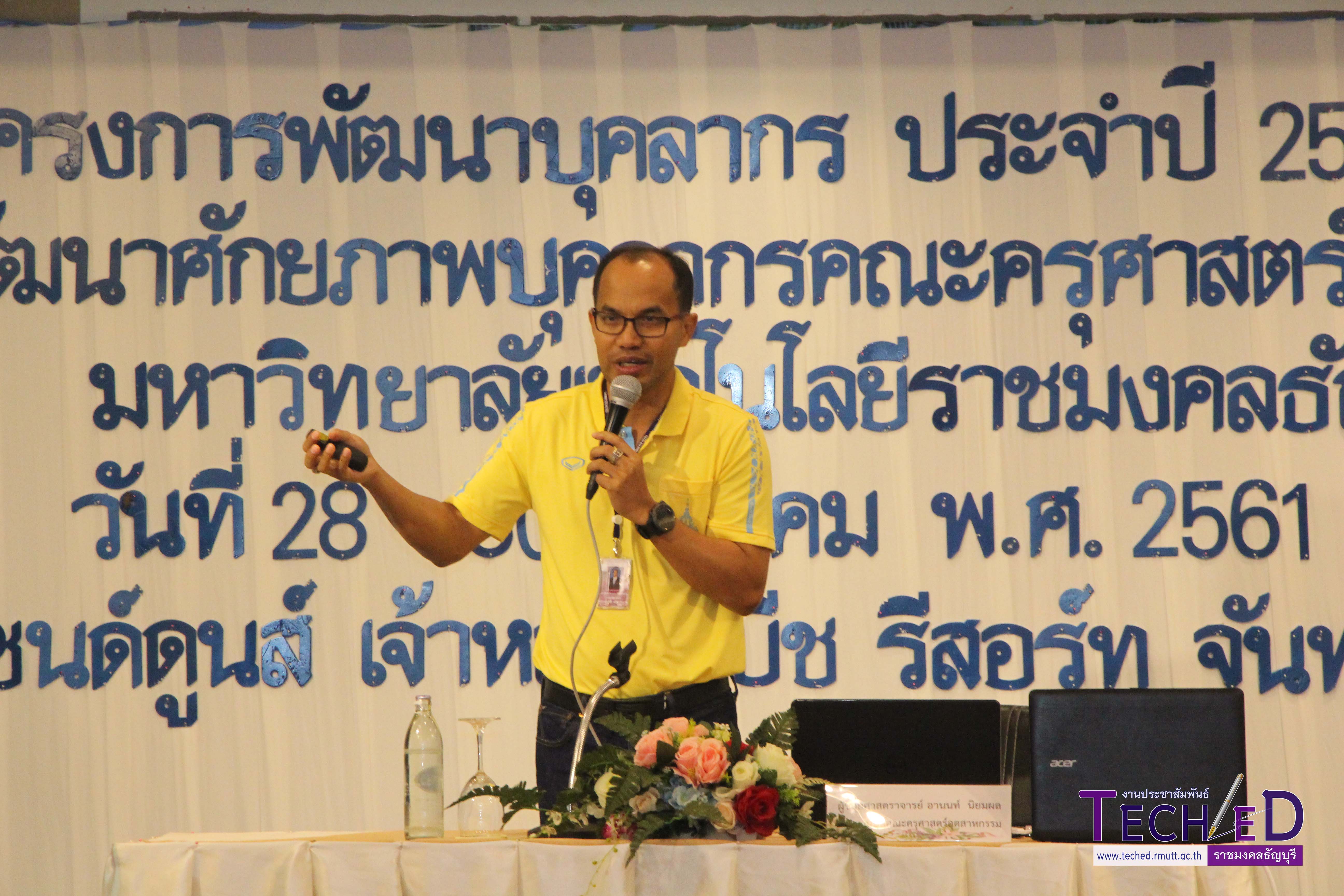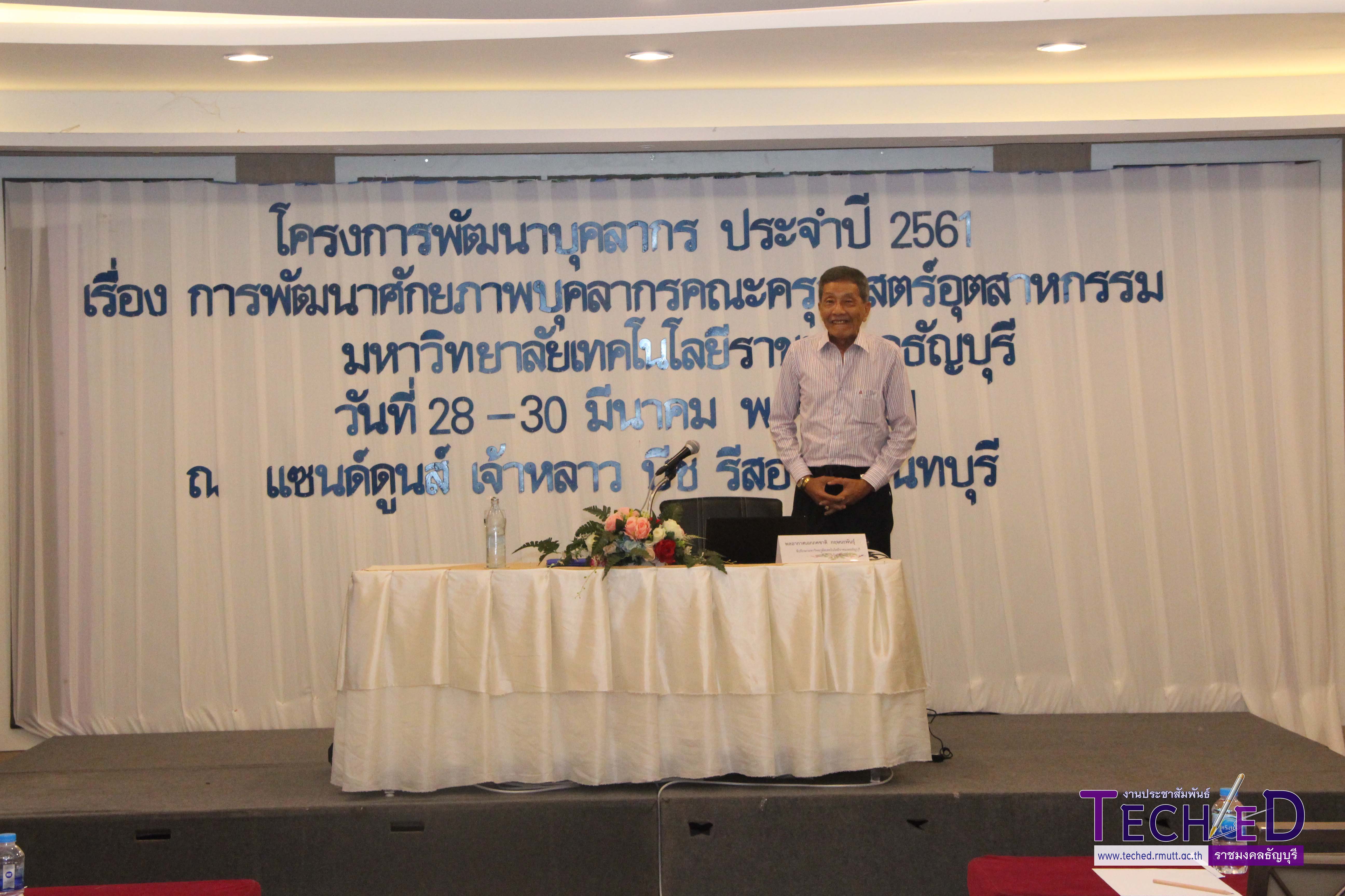 ผู้ช่วยศาสตราจารย์อานนท์ นิยมผล คณบดีคณะครุศาสตร์อุตสาหกรรม เป็นประธานในโครงการพัฒนาบุคลากร ประจำปี 2561 เรื่อง การพัฒนาศักยภาพบุคลากร คณะครุศาสตร์อุตสาหกรรม มีบรรยายพิเศษ โดยพลอากาศเอกภคชาติ กฤษณะพันธุ์ ที่ปรึกษา มทร.ธัญบุรี วันที่ 28 – 30 มีนาคม พ.ศ.2561 ณ แซนด์ดูนส์ เจ้าหลาวบีช รีสอร์อท จังหวัดจันทบุรี