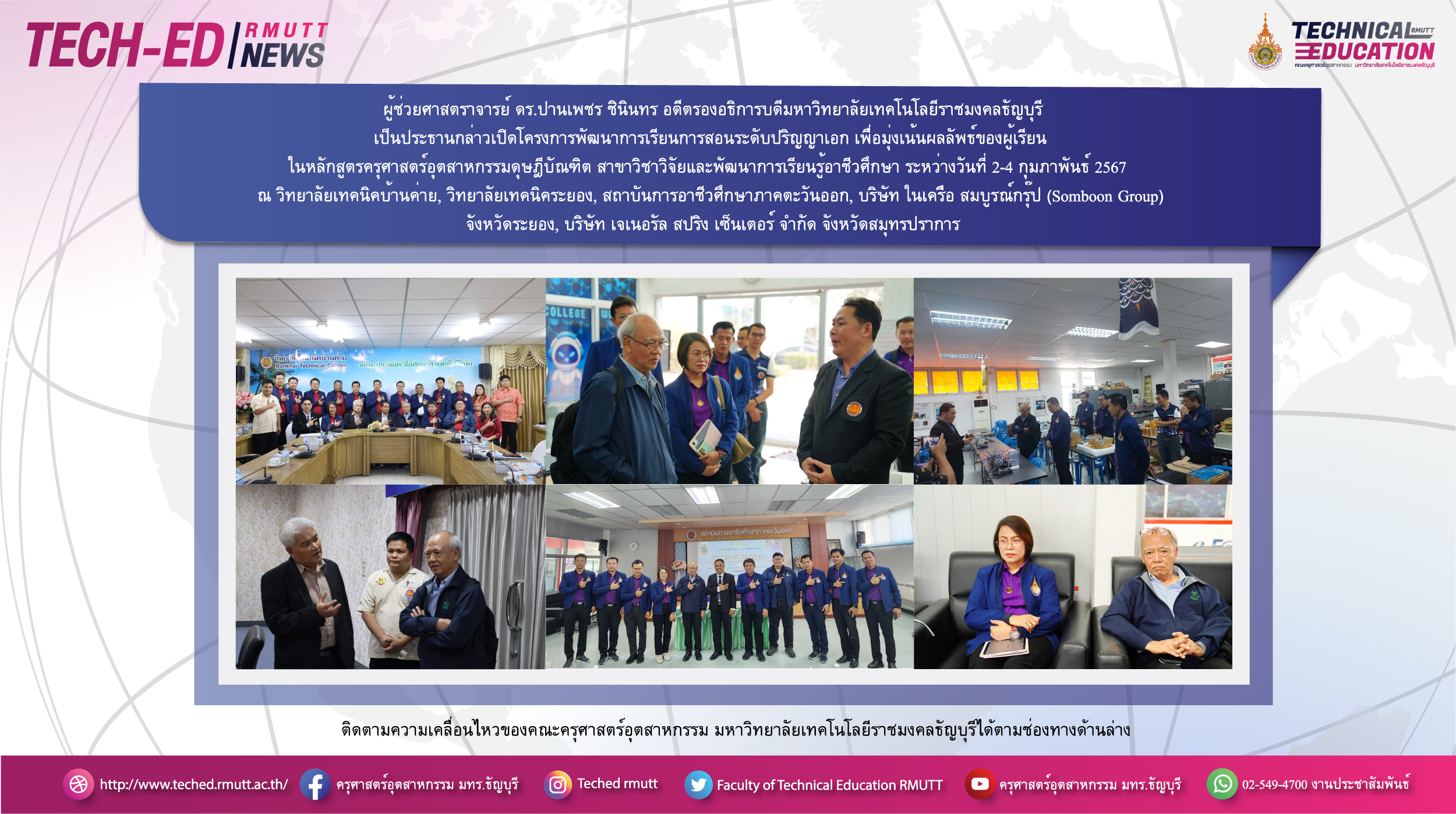 05/02/2024Published by ณัฐณิชา มะลิขาว on 05/02/2024โครงการพัฒนาการเรียนการสอนระดับปริญญาเอก เพื่อมุ่งเน้นผลลัพธ์ของผู้เรียน ในหลักสูตรครุศาสตร์อุตสาหกรรมดุษฎีบัณฑิต สาขาวิชาวิจัยและพัฒนาการเรียนรู้อาชีวศึกษา […]