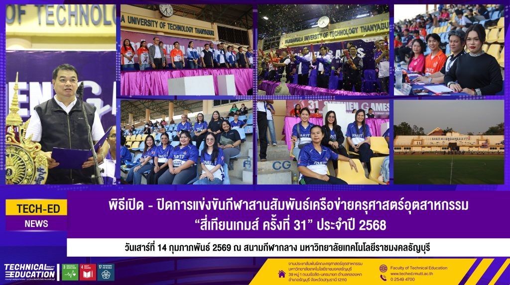 14/02/2026Published by สิรินันท์ นันทะสอน on 14/02/2026คณะครุศาสตร์อุตสาหกรรม มทร.ธัญบุรี “สี่เทียนเกมส์ ครั้งที่ 31” สานสัมพันธ์เครือข่ายครุศาสตร์อุตสาหกรรม 4 สถาบันชั้นนำ […]
