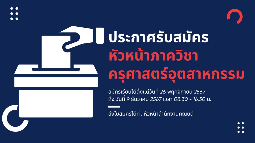 27/05/2025Published by ณัฐณิชา มะลิขาว on 27/05/2025คณะครุศาสตร์อุตสาหกรรม จัดประมูลราคาขายทอดตลาดพัสดุชำรุดไม่ใช้ในราชการ ประจำปีงบประมาณ พ.ศ. 2567 […]